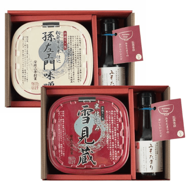 11セット:籾発芽玄米仕込孫左エ門味噌400g×1個、みそたまり100ml×1本 12セット:寒仕込 雪見蔵400g×1個、みそたまり100ml×1本 |